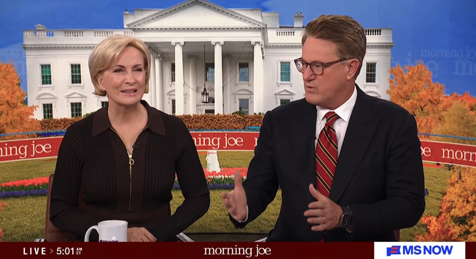 General “MS NOW Reports” hours use a white background with blue letters and red chevron accents to showcase the anchor name version of the block, while the bar can change color for other programming with standalone looks, such as “Morning Joe.”