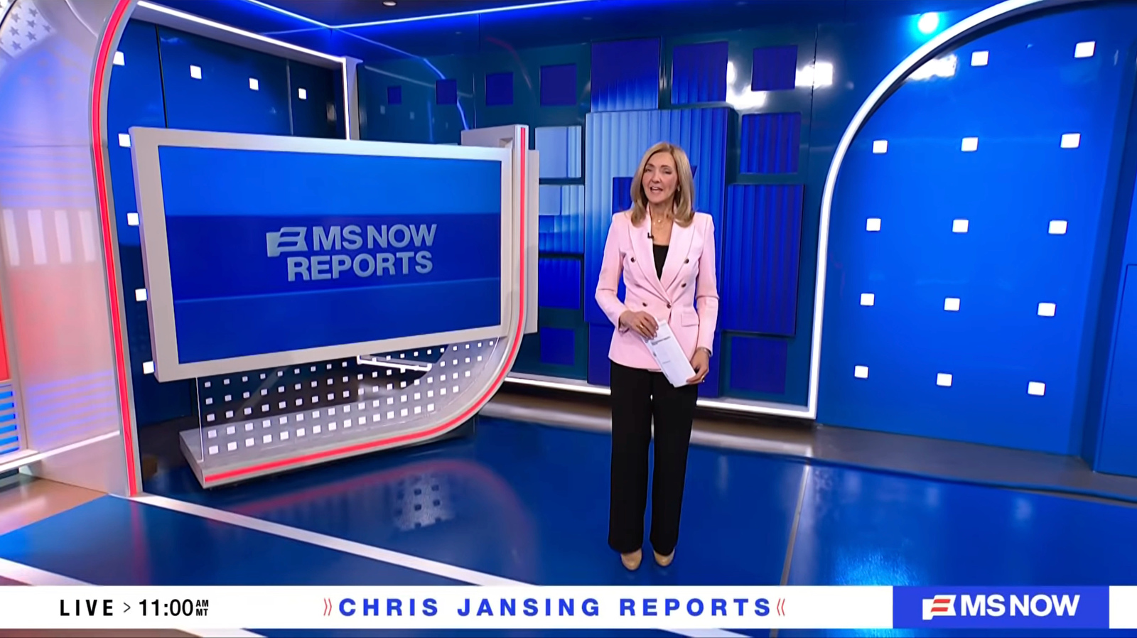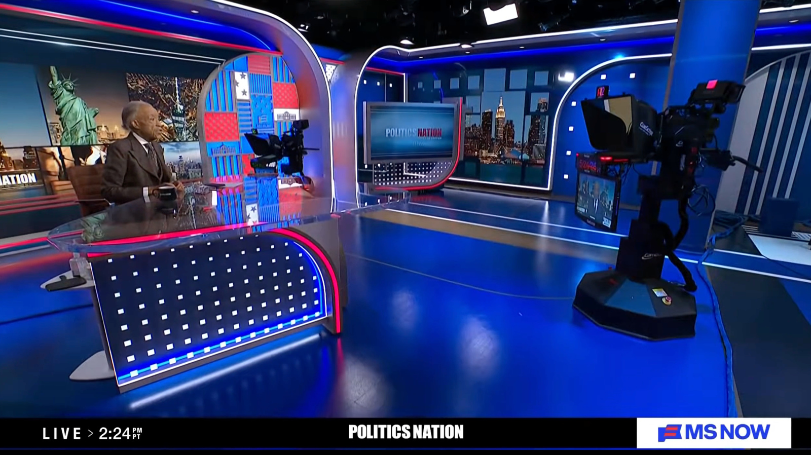 Andy Barsh, Anna Jones, Blackwalnut, Clickspring Design, Corey Atwood, CueScript, Emmett Aiello, Marc Greenstein, Margot Silver, MS NOW, MSNBC, Mystic Custom Fabrication, Niel Galen, Planar, Ross CamBot, Ross Video, Ross Video Artimo, Sony, Telemundo Scenic Fabrication Shop, The Lighting Design Group, Versant, Virtual Production, virtual set extensions