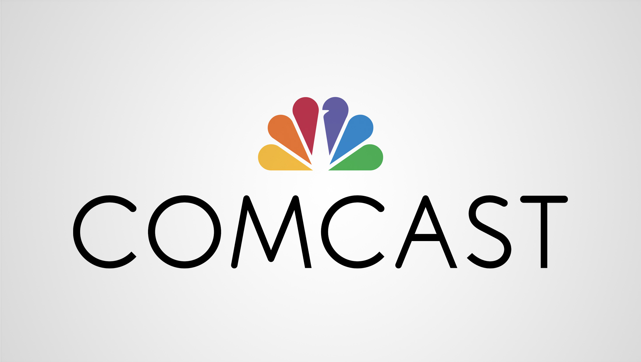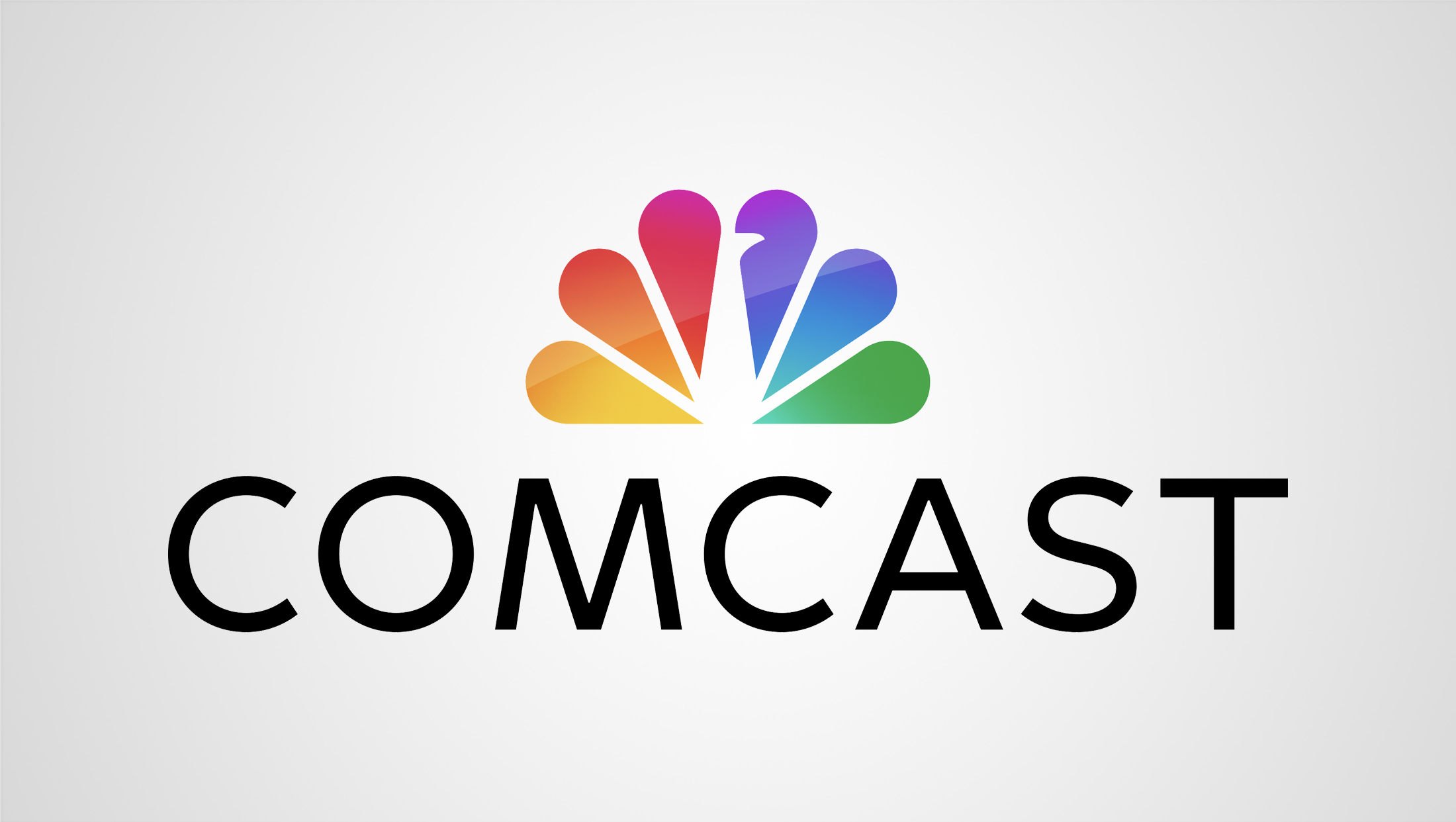 Current Comcast logo with shiny version of the NBC peacock, introduced in January 2024.