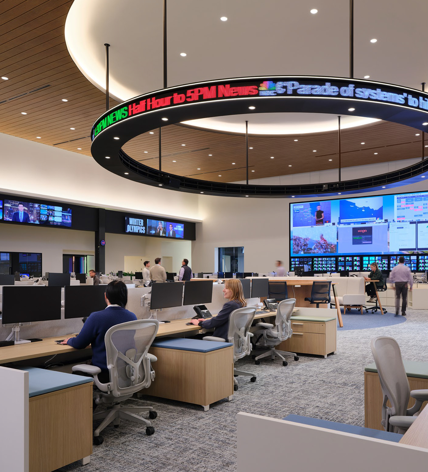 The project consolidated more than 70,000 square feet across multiple floors of NBC Tower into a single workspace where English and Spanish-language journalists, producers, engineers and executives now work side by side.