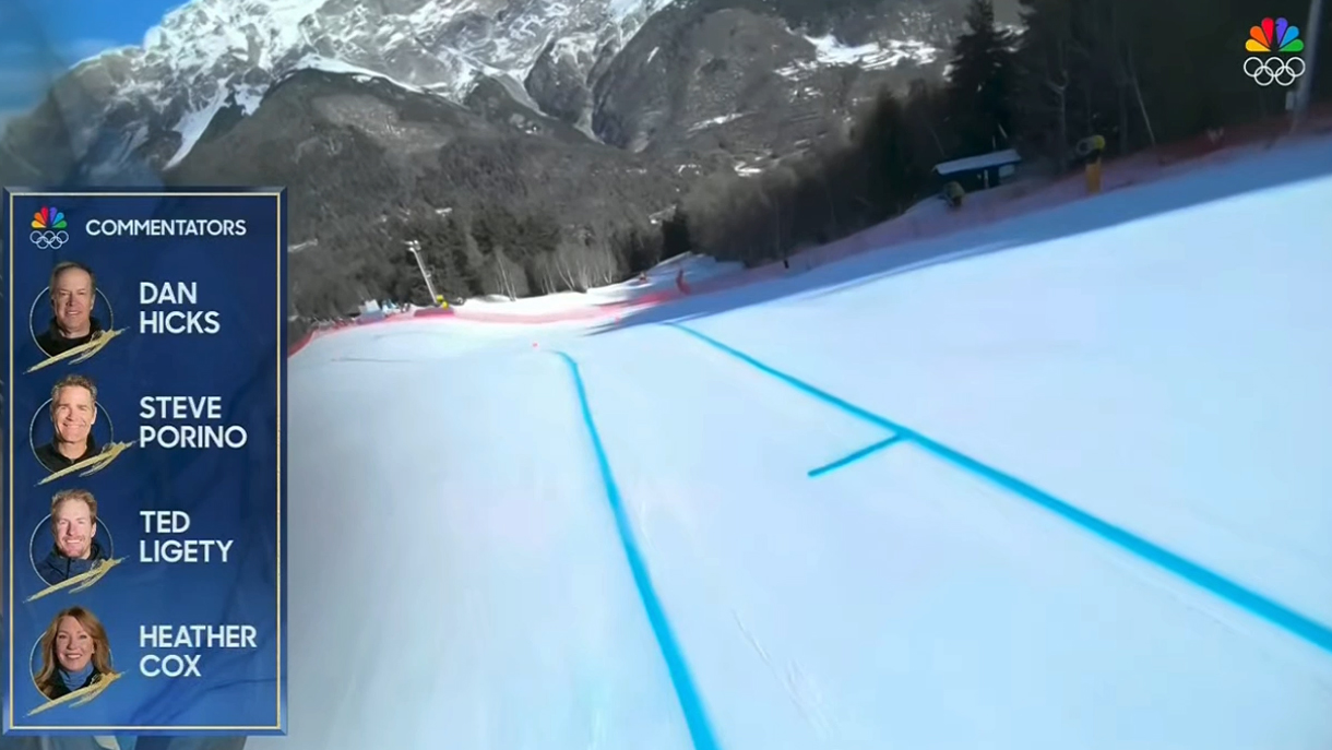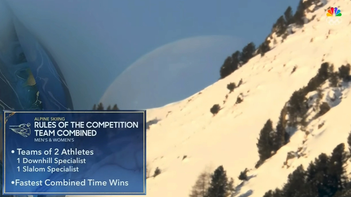 NBC’s insert graphics — ranging from talent identifiers to info boxes and sidebars to scoreboards — maintained a similar subtle scale and look as well, though the curved corner accents were dropped in favor of beveled, squared-off corners that feel like a nod to slabs of marble.
