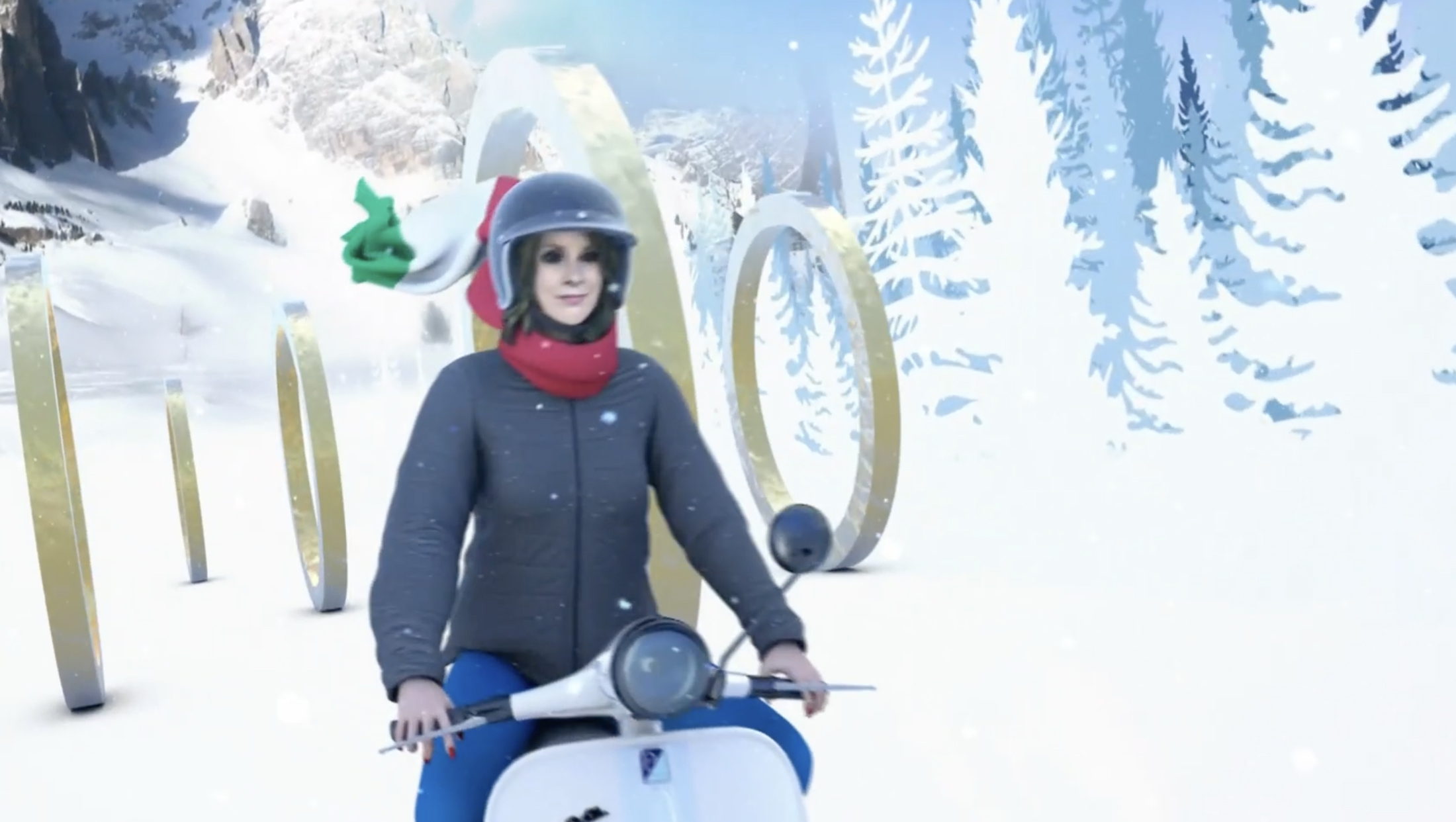 CBC also included a little tribute to Andi Petrillo, its daytime coverage host, by incorporating her likeness onto the Vespa rider, which was achieved by projecting her image onto the 3D model used to create the scenes.
