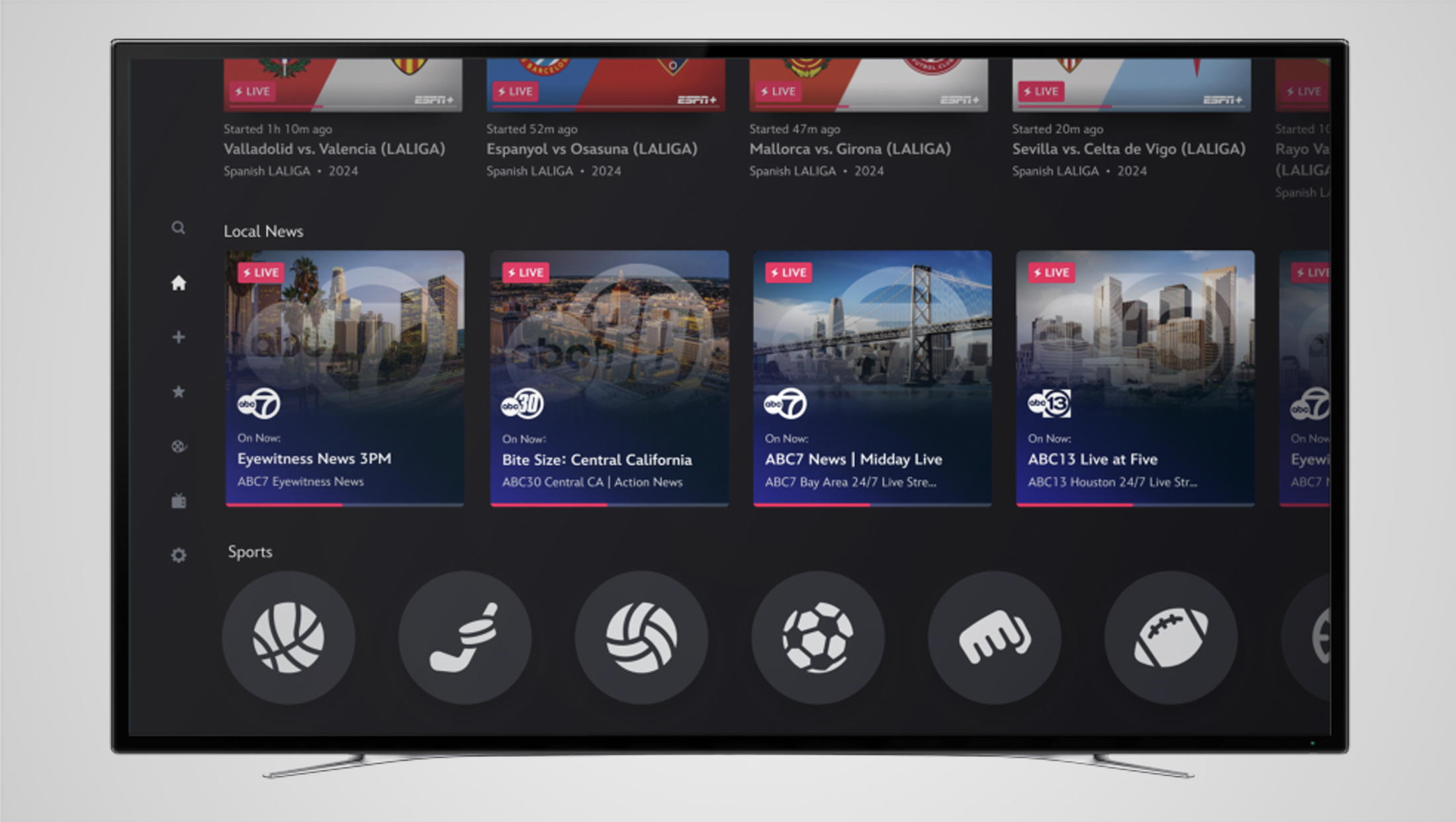 Users will now be able to access streams from WABC in New York City, New York, KABC in Los Angeles, California, WLS in Chicago, Illinois, WPVI in Philadelphia, Pennsylvania, KTRK in Houston, Texas, KGO in San Francisco, California, WTVD in Raleigh-Durham, North Carolina, and KFSN in Fresno, California.